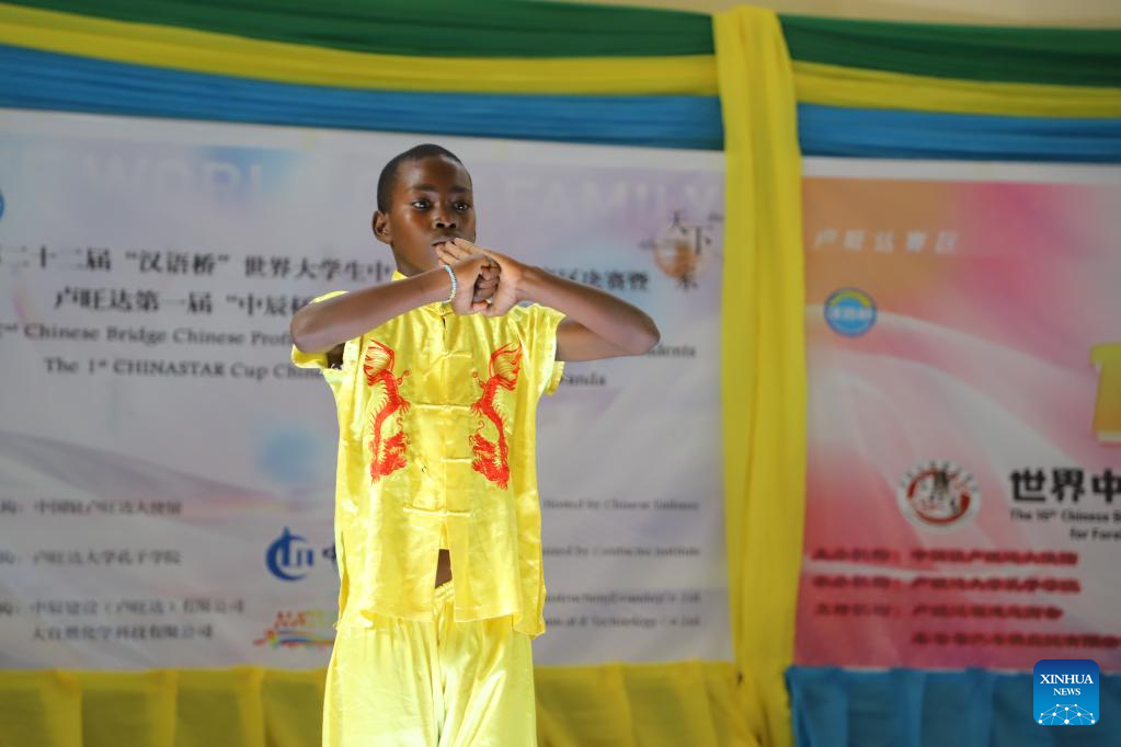 A student performs Chinese martial arts during the "Chinese Bridge" Chinese Proficiency Competition in Kigali, Rwanda, June 11, 2023. Xinhua/Ji Li
