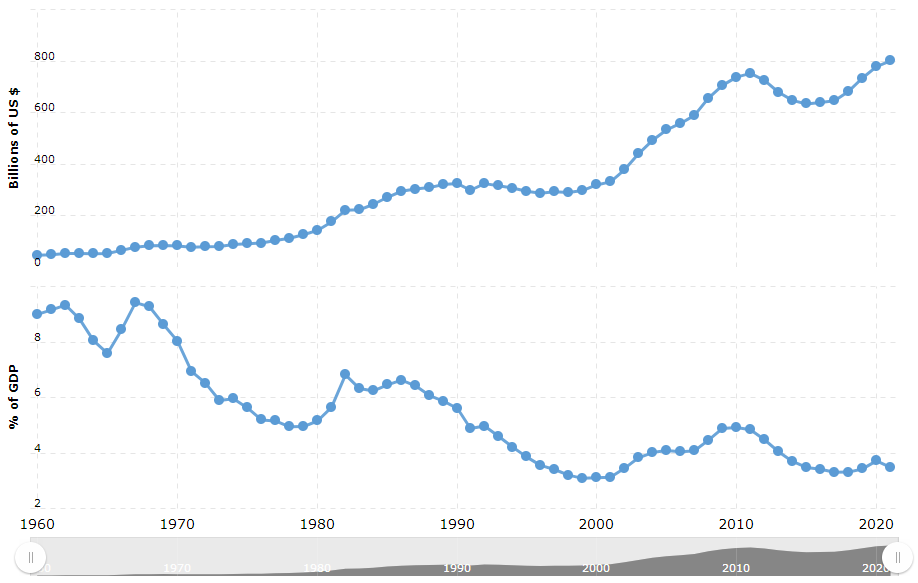 U.S. Military Spending/Defense Budget 1960-2023 (Source: Macrotrends.net)