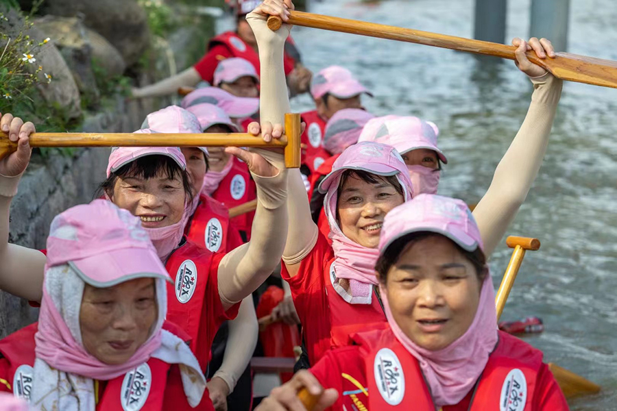Photo shows rowers in a dragon boat race in Huadi village, Putian, southeast China's Fujian Province. (Photo/Cai Hao)
