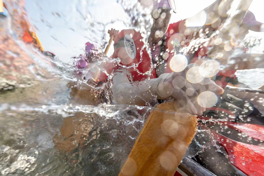 Contestants participate in a dragon boat race in Huadi village, Putian, southeast China's Fujian Province. (Photo/Cai Hao)