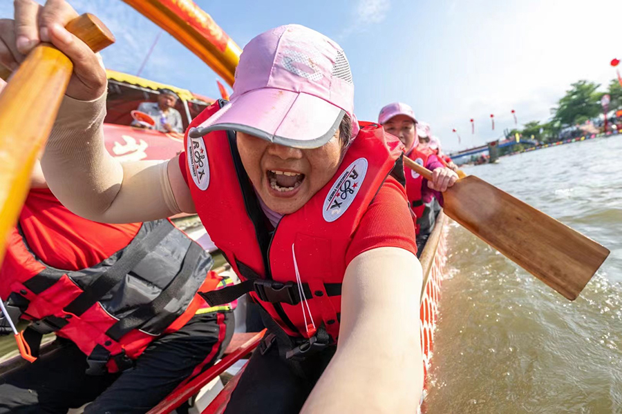 Contestants participate in a dragon boat race in Huadi village, Putian, southeast China's Fujian Province. (Photo/Cai Hao)