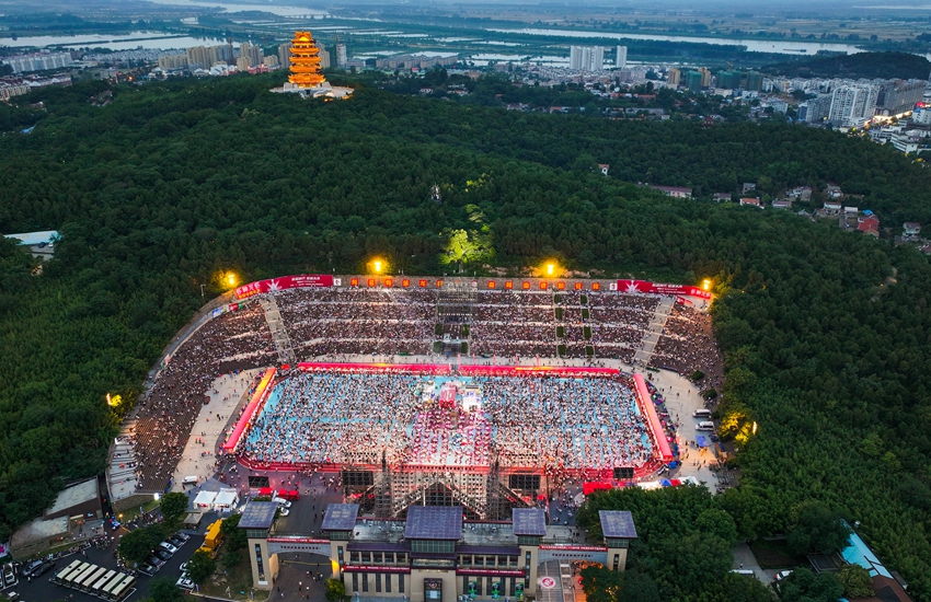 Aerial photo shows a crayfish banquet held in Xuyi county, Huai'an, east China's Jiangsu Province. (Photo/Xu Changyin)