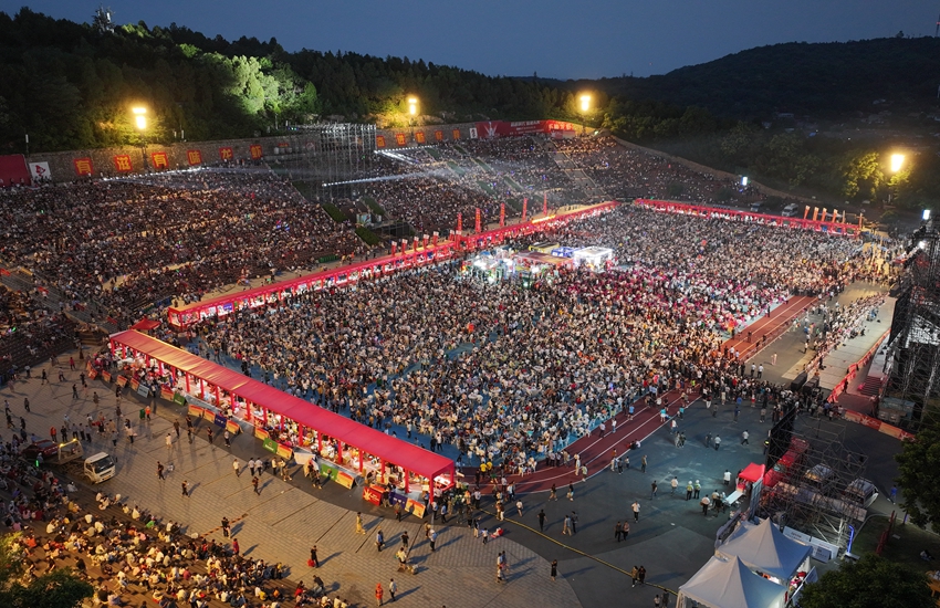 Aerial photo shows a crayfish banquet held in Xuyi county, Huai'an, east China's Jiangsu Province. (Photo/Xu Changyin)