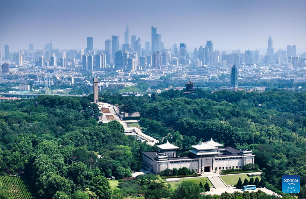 This aerial photo taken on June 9, 2023 shows a view of the Yuhuatai memorial park of martyrs in Nanjing, east China's Jiangsu Province. Nanjing, the capital of six dynasties in ancient China, has rich cultural accumulation and unique cultural landscapes. (Xinhua/Yang Lei)