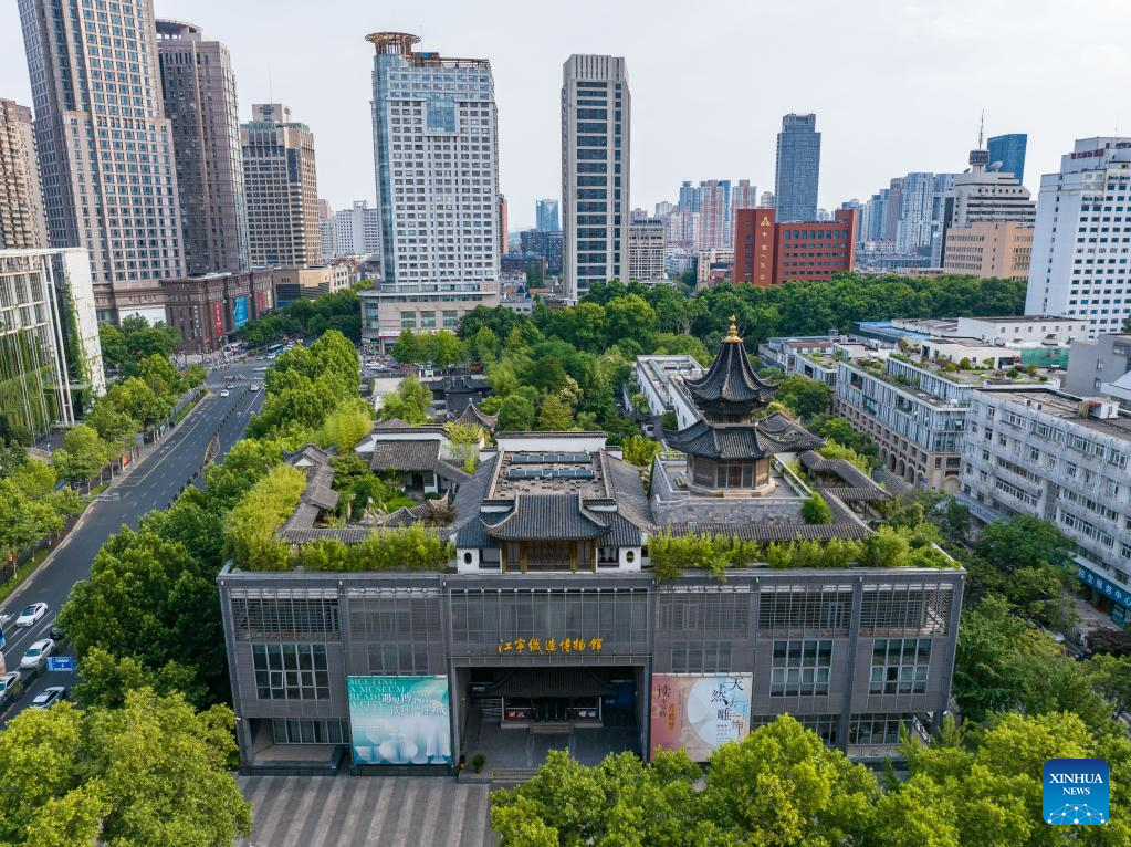 This aerial photo taken on June 13, 2023 shows a view of the Jiangning Imperial Silk Manufacturing Museum in Nanjing, east China's Jiangsu Province. Nanjing, the capital of six dynasties in ancient China, has rich cultural accumulation and unique cultural landscapes. (Xinhua/Li Bo)
