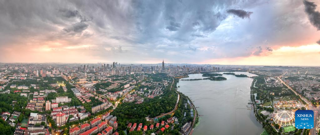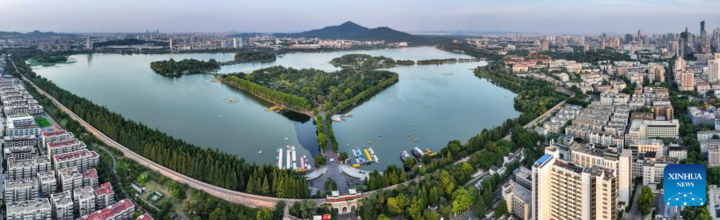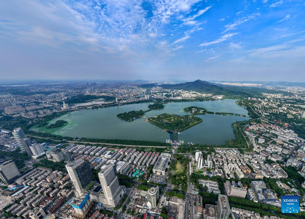This aerial photo taken on June 10, 2023 shows a view of the Xuanwu Lake in Nanjing, east China's Jiangsu Province. Nanjing, the capital of six dynasties in ancient China, has rich cultural accumulation and unique cultural landscapes. (Xinhua/Yang Lei)