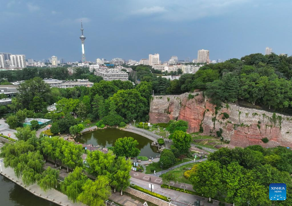This aerial photo taken on June 10, 2023 shows a view of the stone city in Nanjing, east China's Jiangsu Province. Nanjing, the capital of six dynasties in ancient China, has rich cultural accumulation and unique cultural landscapes. (Xinhua/Yang Lei)