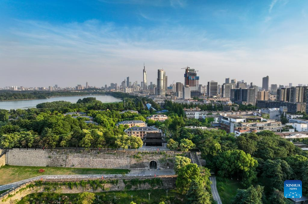 This aerial photo taken on June 11, 2023 shows a view of Nanjing, east China's Jiangsu Province. Nanjing, the capital of six dynasties in ancient China, has rich cultural accumulation and unique cultural landscapes. (Xinhua/Yang Lei)