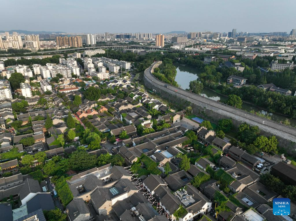 This aerial photo taken on June 12, 2023 shows a view of the Mendong cultural and historical block in Nanjing, east China's Jiangsu Province. Nanjing, the capital of six dynasties in ancient China, has rich cultural accumulation and unique cultural landscapes. (Xinhua/Ji Chunpeng)