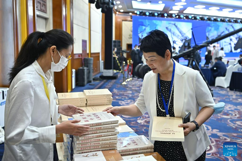 A participant receives relevant books during the Forum on Global Human Rights Governance in Beijing, capital of China, June 14, 2023. The Forum on Global Human Rights Governance opened in Beijing on Wednesday. (Xinhua/Li Xin)