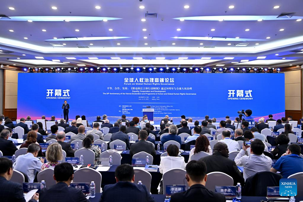 This photo taken on June 14, 2023 shows the opening ceremony of the Forum on Global Human Rights Governance in Beijing, capital of China. The Forum on Global Human Rights Governance opened in Beijing on Wednesday. (Xinhua/Li Xin)