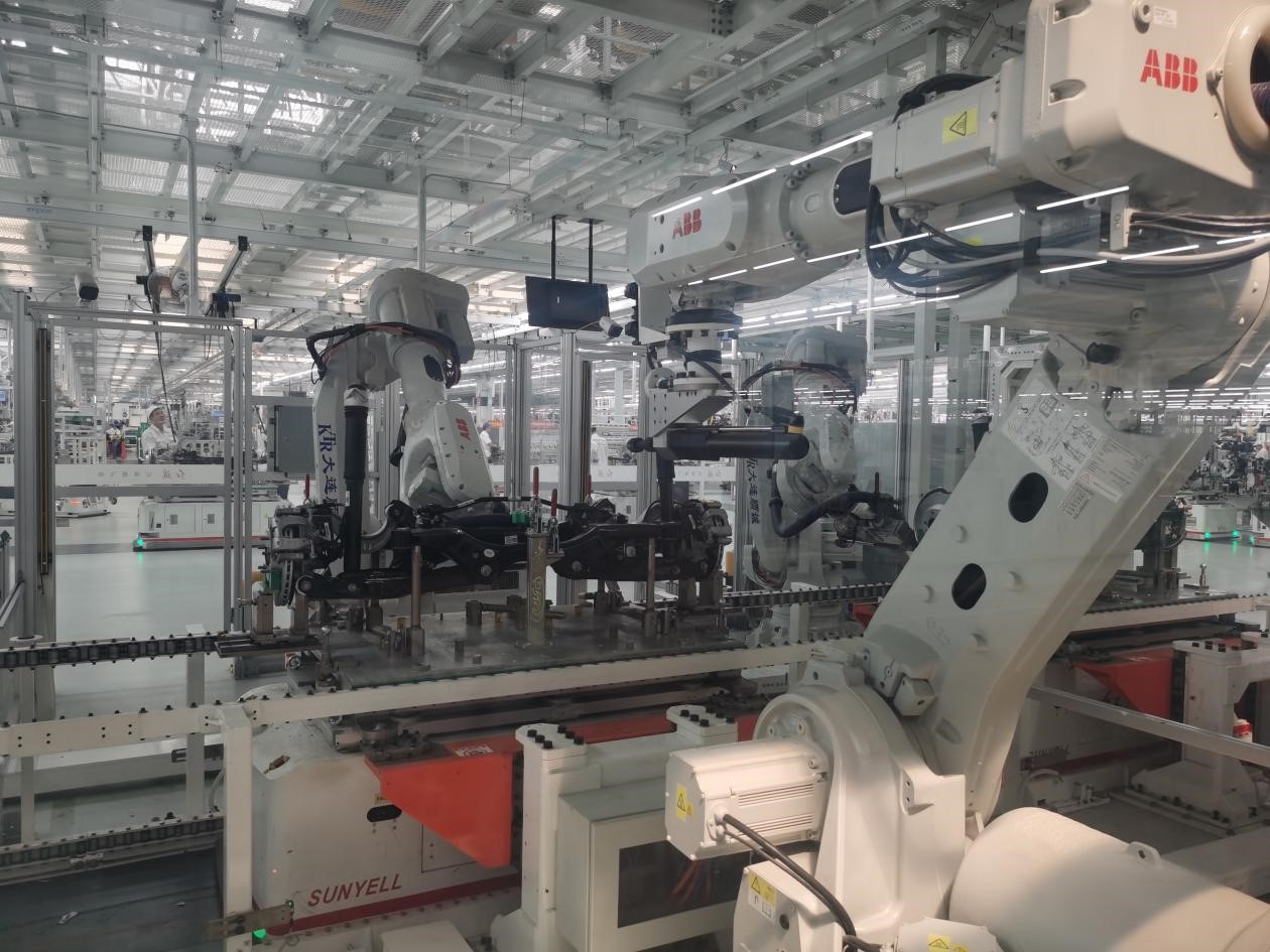 Photo taken on June 14, 2023 shows an assembly robot at the FAW-Hongqi Prosperity Factory in Changchun, northeast China’s Jilin Province. (Photo/People’s Daily Online)