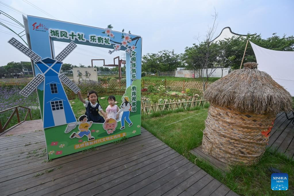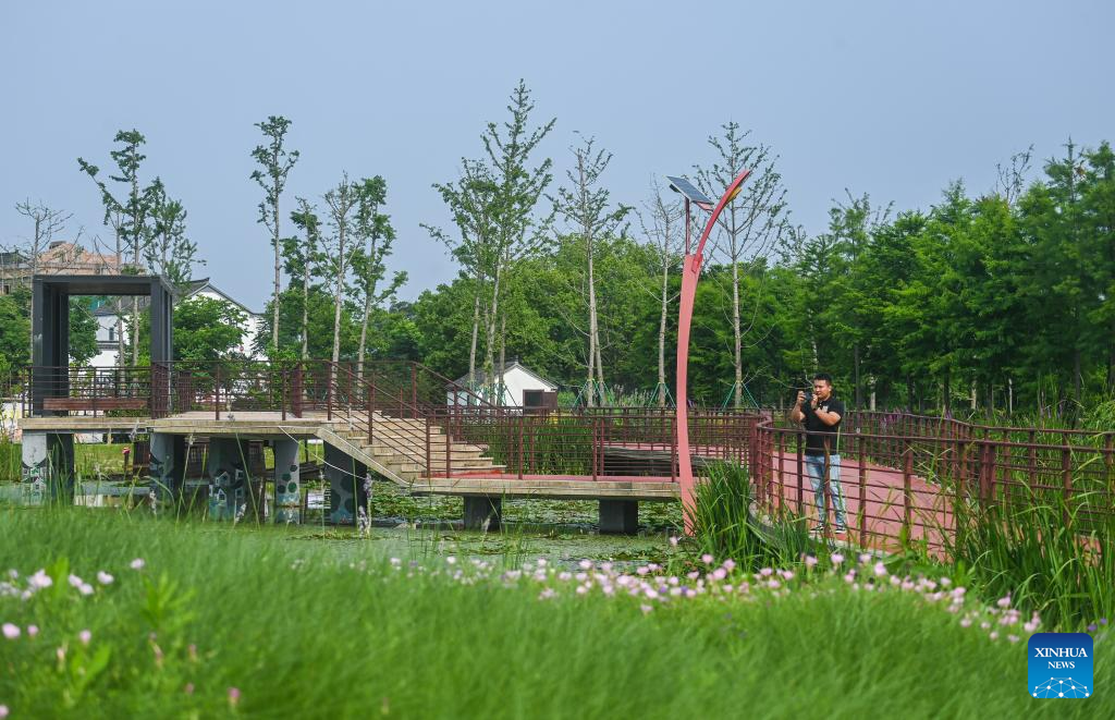 A visitor takes pictures in Lianfeng Village of Nanhu District, Jiaxing City, east China's Zhejiang Province, June 14, 2023.