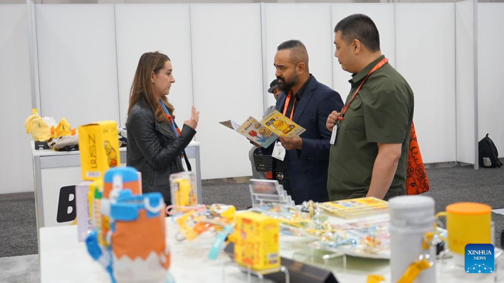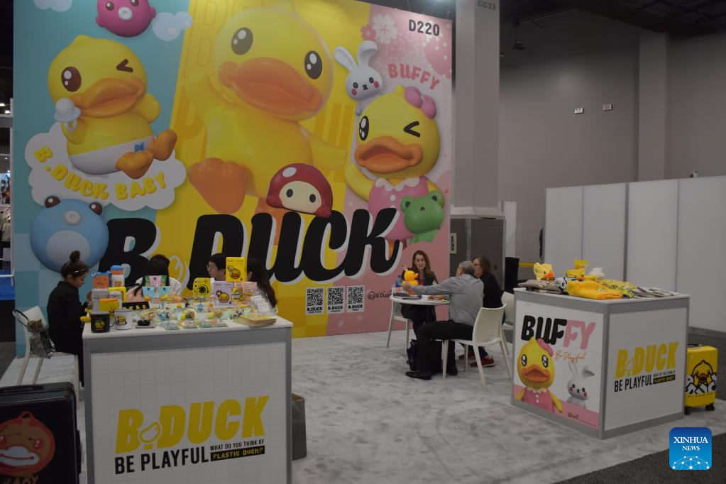 People visit the exhibition area of Chinese brand B. Duck during Licensing Expo 2023 in Las Vegas, the United States, on June 13, 2023. (Photo by Zeng Hui/Xinhua)