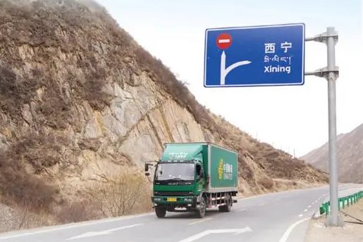 An express delivery vehicle from Menyuan Hui Autonomous County runs on the road. (People's Daily/Jia Fengfeng)