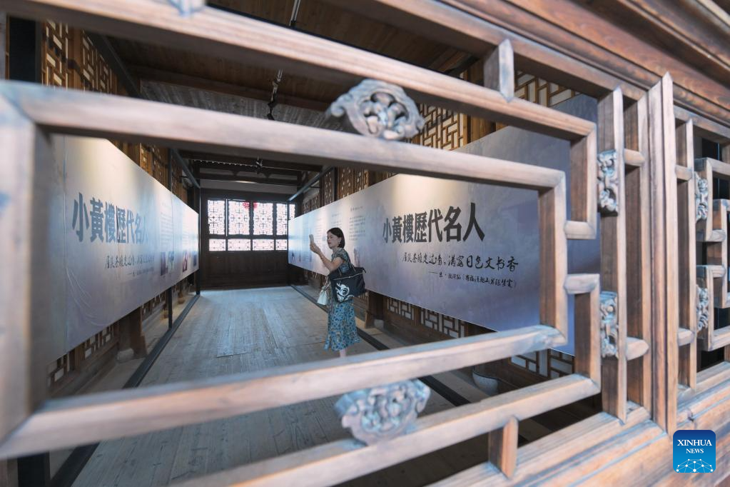 A tourist visits the former residence of Yan Fu, a renowned Chinese thinker, educator and translator, in Sanfangqixiang (the Three Lanes and Seven Alleys) in Fuzhou, southeast China's Fujian Province, June 13, 2023. Sanfangqixiang, or the Three Lanes and Seven Alleys, is a 40-hectare complex famous for its traditional urban fabric of lanes and alleys. The green slate walkways are lined by ancestral houses, featuring white walls and black tiles.
