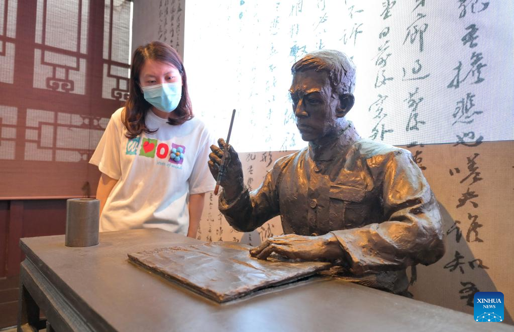 A tourist visits the former residence of Lin Juemin, a renowned revolutionary hero, in Sanfangqixiang (the Three Lanes and Seven Alleys) in Fuzhou, southeast China's Fujian Province, June 14, 2023. Sanfangqixiang, or the Three Lanes and Seven Alleys, is a 40-hectare complex famous for its traditional urban fabric of lanes and alleys. The green slate walkways are lined by ancestral houses, featuring white walls and black tiles.