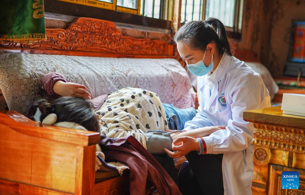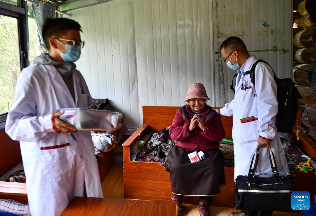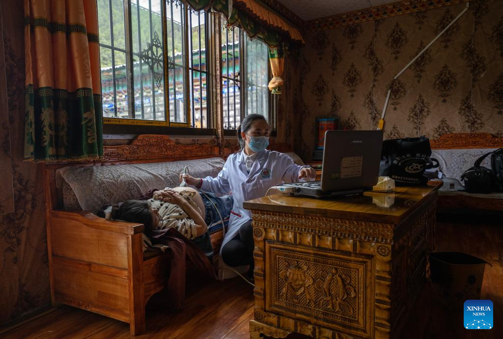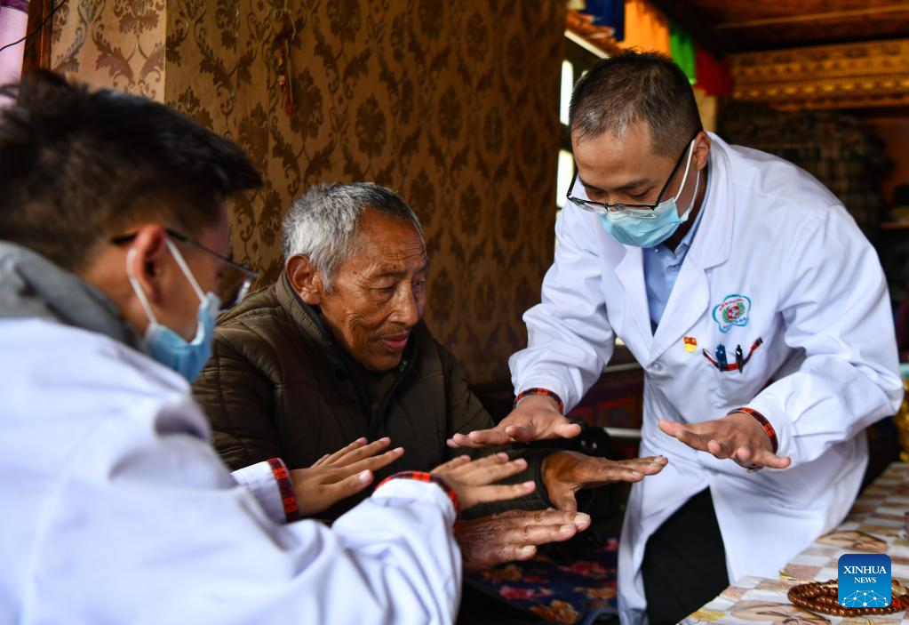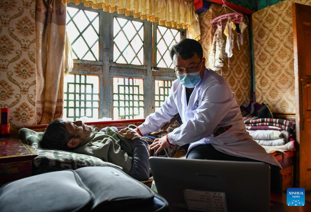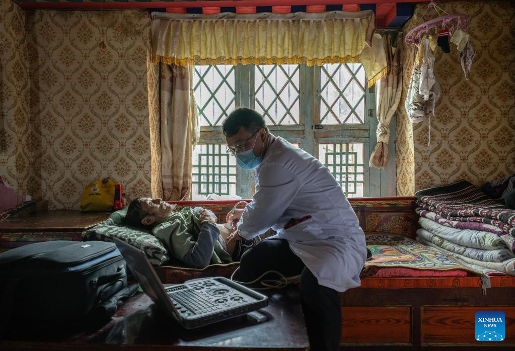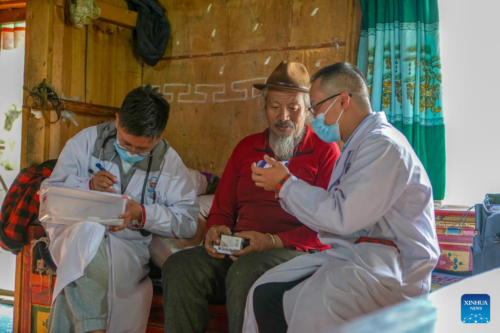 "As a doctor, this is a sense of responsibility and mission," said Wang Tongxu, "It's especially meaningful to me when I can bring some benefits to the local Tibetan villagers with what I have learned." (Xinhua/Shao Zedong)