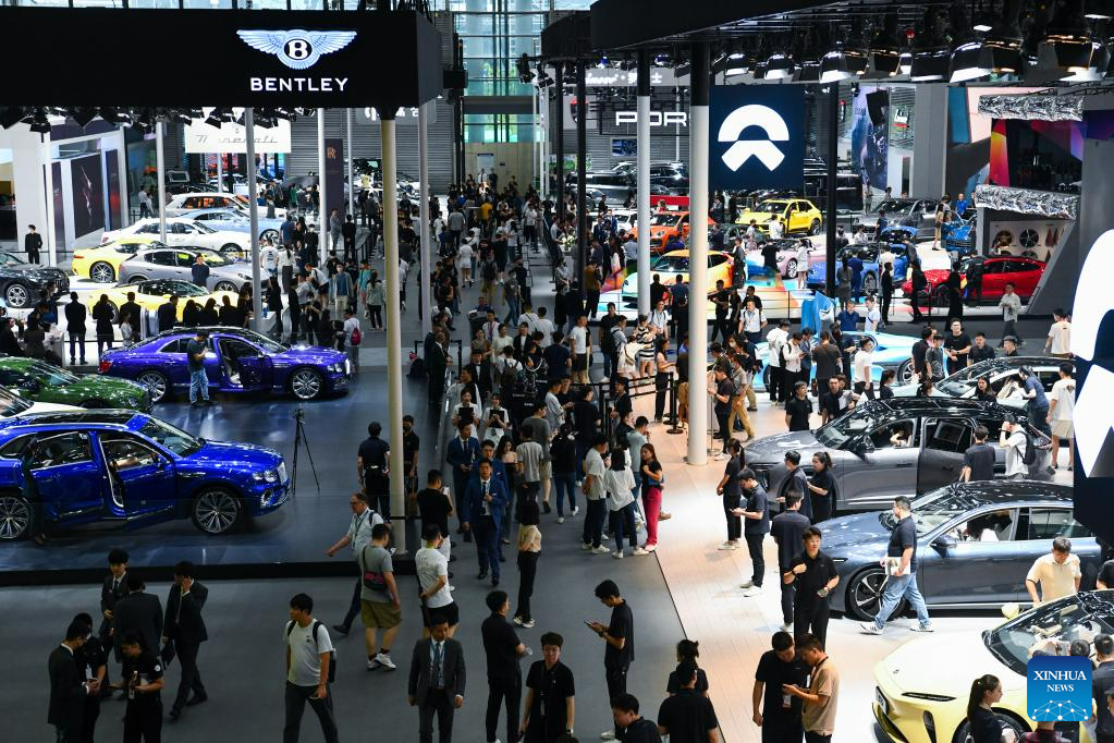 People visit the 27th Guangdong-Hong Kong-Macao Greater Bay Area International Auto Show at the Shenzhen Convention and Exhibition Center in Shenzhen, south China's Guangdong Province, June 16, 2023. The auto show kicked off here on Friday and will last till June 24. (Xinhua/Liang Xu)