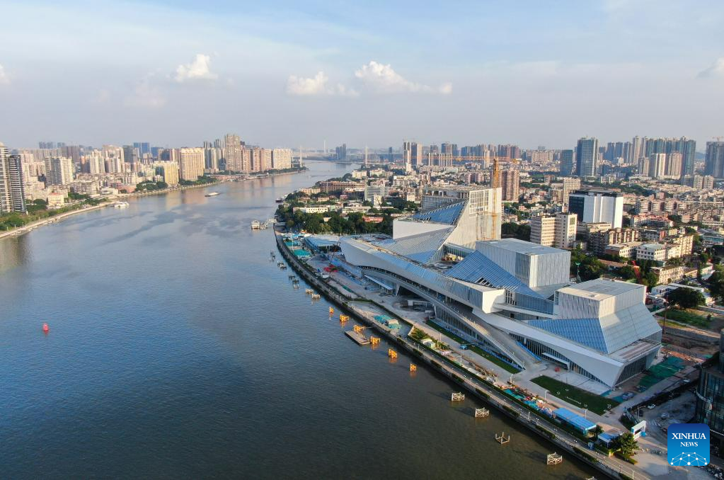 This aerial photo taken on June 12, 2023 shows an art center in Guangzhou, south China's Guangdong Province. Guangzhou has a history of more than 2,000 years. The city has been a place of cultural integration between Chinese and foreign cultures since ancient times. It has manifested the openness and inclusiveness involved with Chinese culture. (Xinhua/Deng Hua)