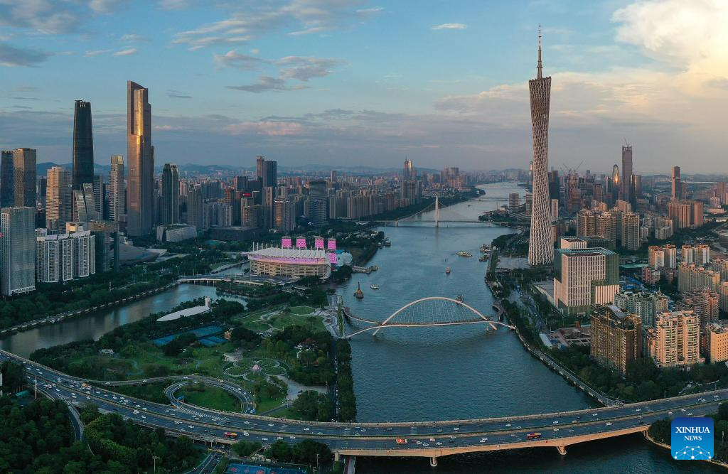 This aerial photo taken on June 10, 2023 shows the urban view along the Zhujiang River in Guangzhou, south China's Guangdong Province. Guangzhou has a history of more than 2,000 years. The city has been a place of cultural integration between Chinese and foreign cultures since ancient times. It has manifested the openness and inclusiveness involved with Chinese culture. (Xinhua/Liu Dawei)