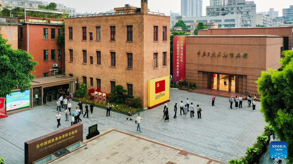 This aerial photo taken on June 13, 2023 shows the Memorial for the Site of the Third National Congress of the Communist Party of China (CPC) in Yuexiu District of Guangzhou, south China's Guangdong Province. Guangzhou has a history of more than 2,000 years. The city has been a place of cultural integration between Chinese and foreign cultures since ancient times. It has manifested the openness and inclusiveness involved with Chinese culture. (Xinhua/Liu Dawei)