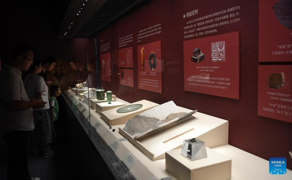People visit the Tomb of Nanyue King in Western Han Dynasty in Guangzhou, south China's Guangdong Province, June 13, 2023. Guangzhou has a history of more than 2,000 years. The city has been a place of cultural integration between Chinese and foreign cultures since ancient times. It has manifested the openness and inclusiveness involved with Chinese culture. (Xinhua/Deng Hua)