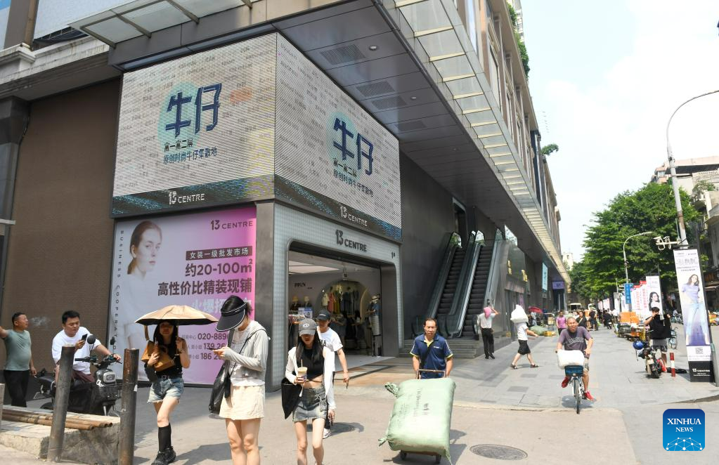 This photo taken on June 13, 2023 shows a clothing wholesale market in Guangzhou, south China's Guangdong Province. Guangzhou has a history of more than 2,000 years. The city has been a place of cultural integration between Chinese and foreign cultures since ancient times. It has manifested the openness and inclusiveness involved with Chinese culture. (Xinhua/Lu Hanxin)
