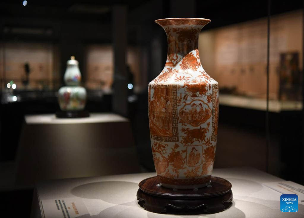 This photo taken on June 13, 2023 shows the Guangzhou painted porcelain exhibited at the Guangzhou Museum in Guangzhou, south China's Guangdong Province. Guangzhou has a history of more than 2,000 years. The city has been a place of cultural integration between Chinese and foreign cultures since ancient times. It has manifested the openness and inclusiveness involved with Chinese culture. (Xinhua/Deng Hua)