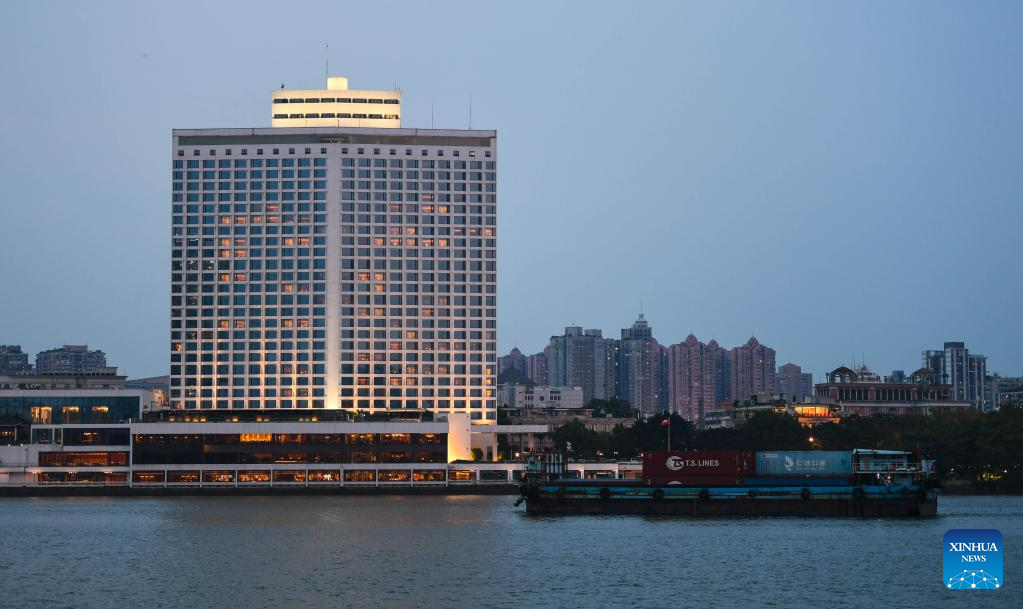 This aerial photo taken on June 13, 2023 shows the White Swan Hotel in Guangzhou, south China's Guangdong Province. Guangzhou has a history of more than 2,000 years. The city has been a place of cultural integration between Chinese and foreign cultures since ancient times. It has manifested the openness and inclusiveness involved with Chinese culture. (Xinhua/Deng Hua)