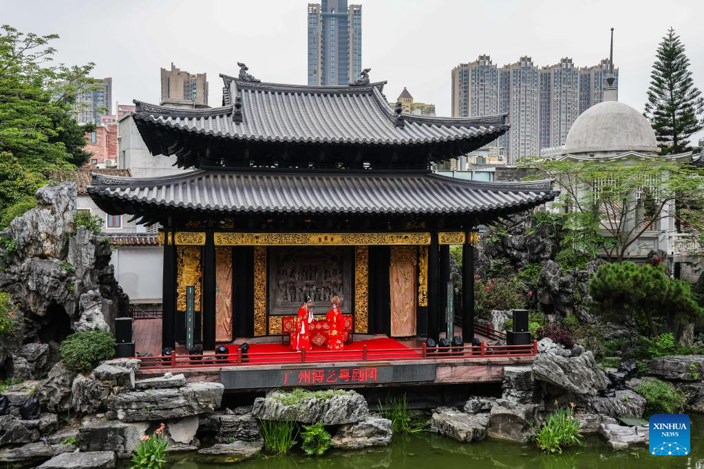 Cantonese opera actors perform at the Cantonese Opera Art Museum in Guangzhou, south China's Guangdong Province, April 18, 2023. Guangzhou has a history of more than 2,000 years. The city has been a place of cultural integration between Chinese and foreign cultures since ancient times. It has manifested the openness and inclusiveness involved with Chinese culture. (Xinhua/Liu Dawei)