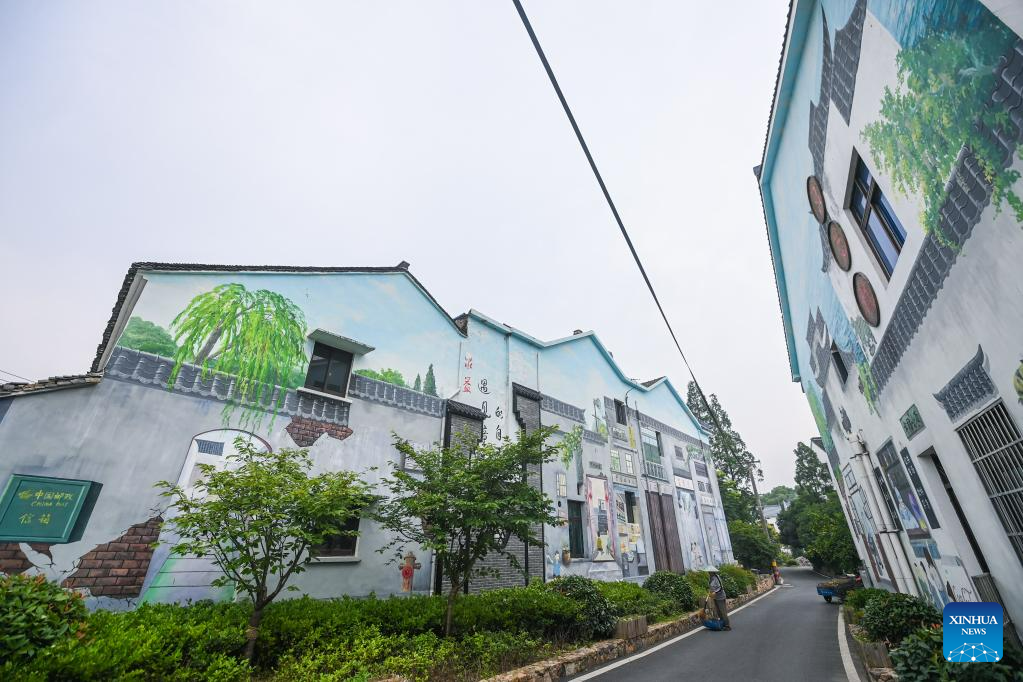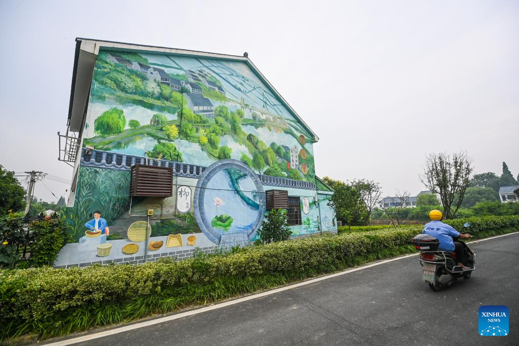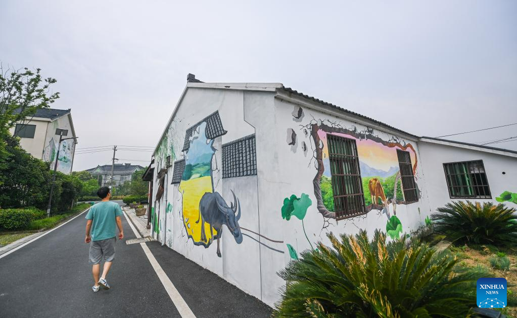 This photo taken on June 16, 2023 shows a view of Quanyi Village in Donglin Town, Huzhou, east China's Zhejiang Province. Under Zhejiang's Green Rural Revival Program, Donglin Town has been focusing on building a beautiful countryside based on its featured cultural and natural resources, making every effort to achieve green and sustainable development while maintaining economic gains. (Xinhua/Xu Yu)