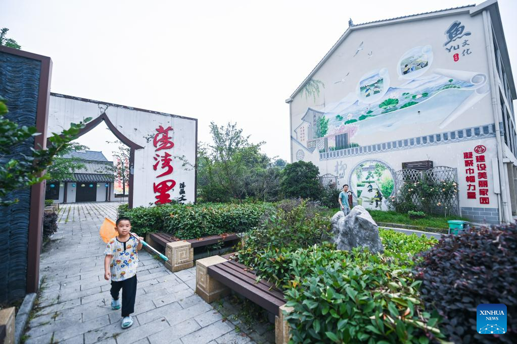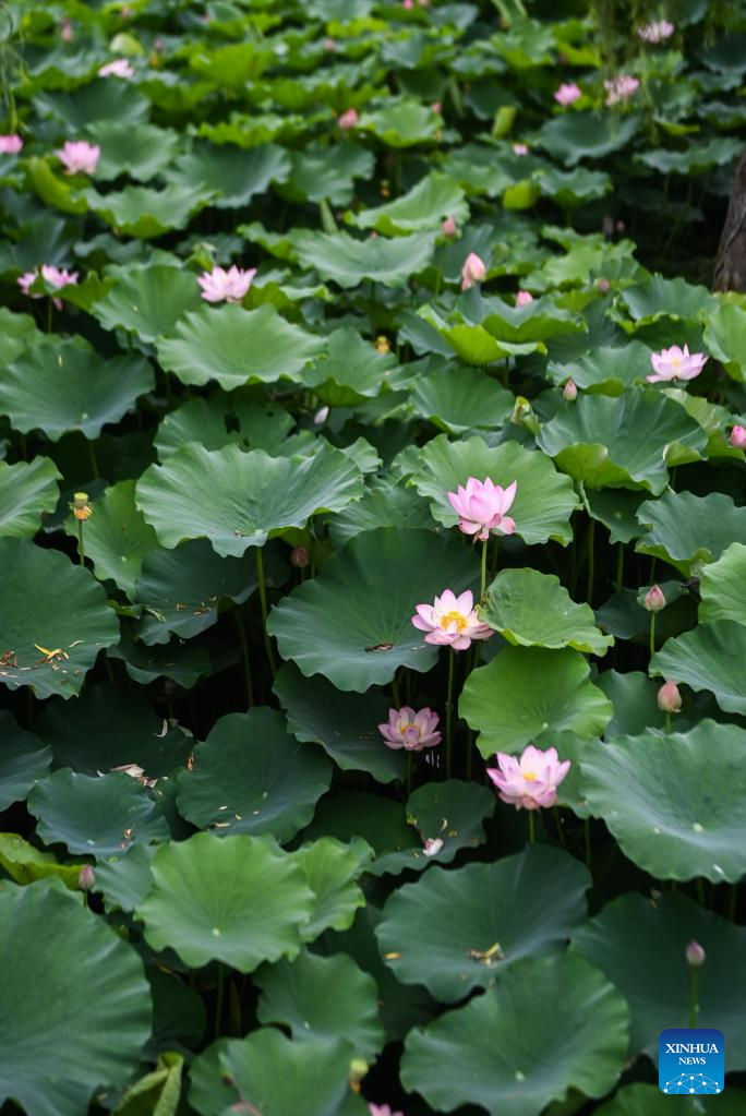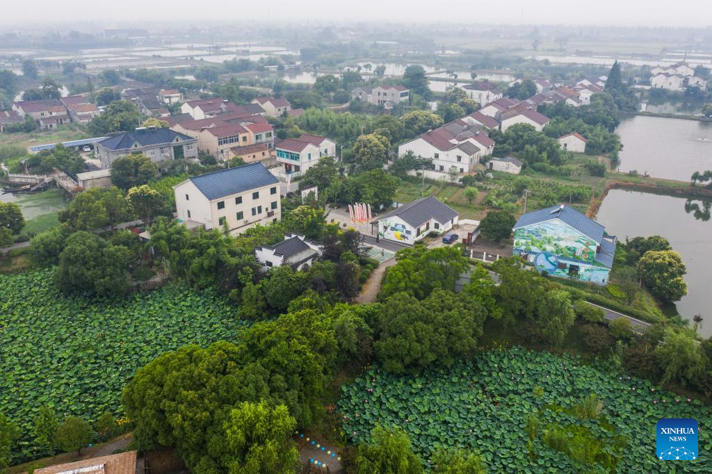 Lotus flowers are in full bloom in Quanxin Village of Donglin Town, Huzhou, east China's Zhejiang Province, June 16, 2023. Under Zhejiang's Green Rural Revival Program, Donglin Town has been focusing on building a beautiful countryside based on its featured cultural and natural resources, making every effort to achieve green and sustainable development while maintaining economic gains. (Xinhua/Xu Yu)