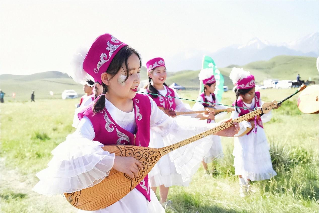 Children in Dushan village, Shawan, northwest China's Xinjiang Uygur autonomous region play Dombra, a traditional musical instrument. (Photo by Lan Ling/People's Daily Online)