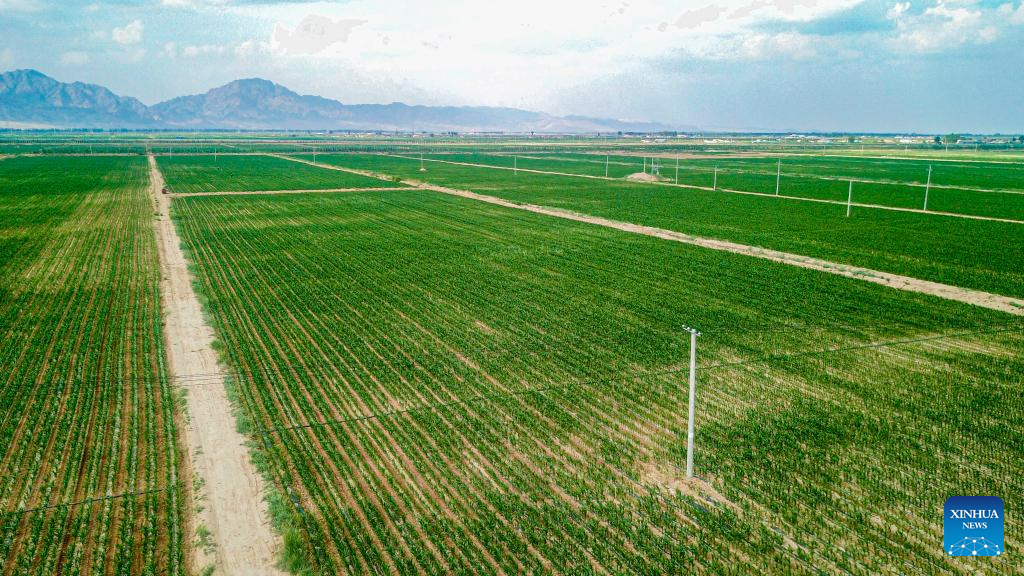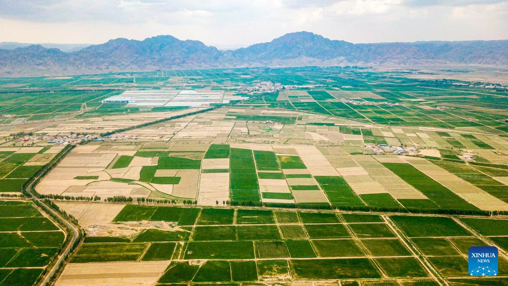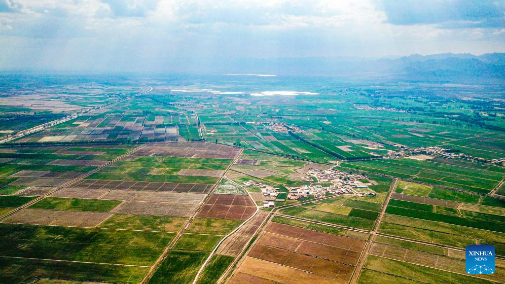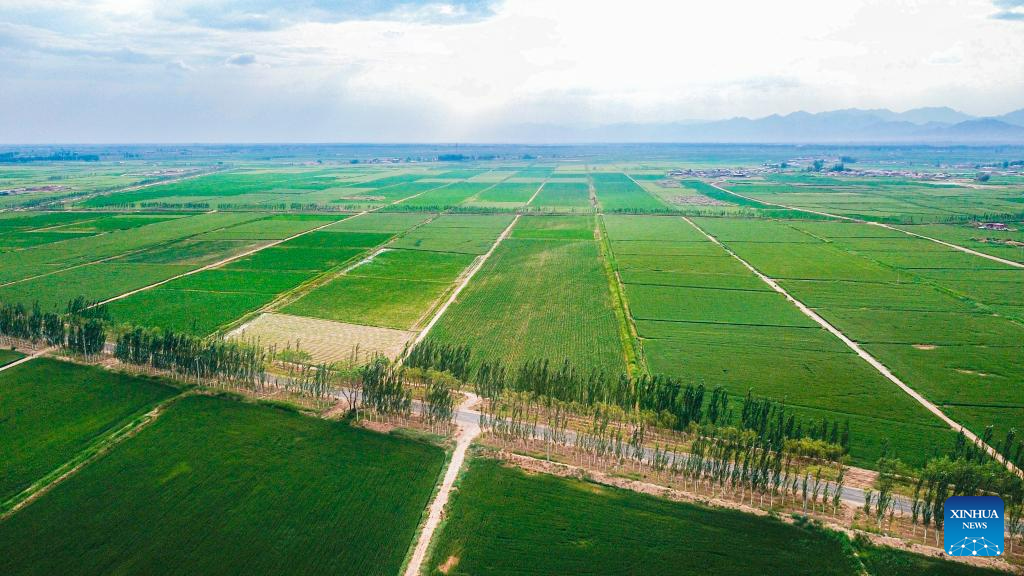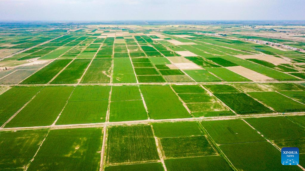 This aerial photo taken on June 17, 2023 shows the scenery in Linhe District in Bayannur, north China's Inner Mongolia Autonomous Region. (Xinhua/Peng Yuan)