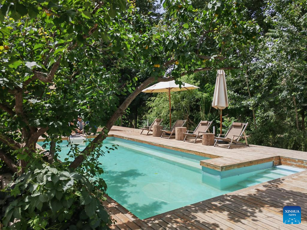 This photo taken on June 11, 2023 shows a corner of a high-end homestay in Zhongwei, northwest China's Ningxia Hui Autonomous Region. (Xinhua/Ma Sijia)