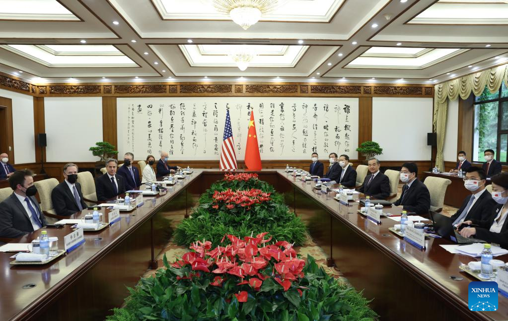BEIJING, June 19 (Xinhua) -- Wang Yi, director of the Office of the Foreign Affairs Commission of the Communist Party of China Central Committee, met with visiting U.S. Secretary of State Antony Blinken in Beijing on Monday.