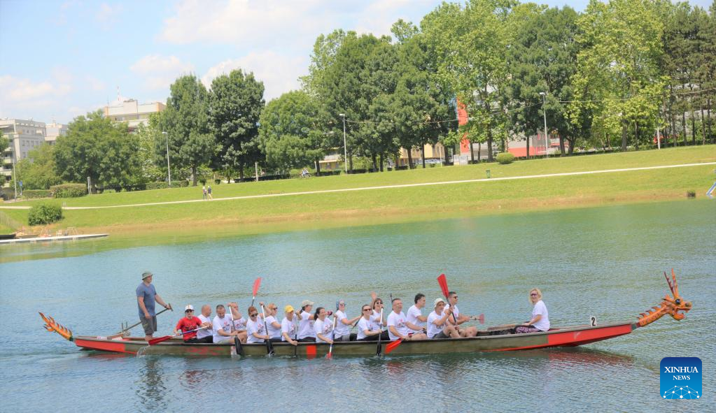 ZAGREB, June 17 (Xinhua) -- The moment the dragon boat race started, the participating boats rushed forward amid the rhythmic drumming and the rowers' vigorous shouts while the spectators enthusiastically cheered on the shore for the contestants.