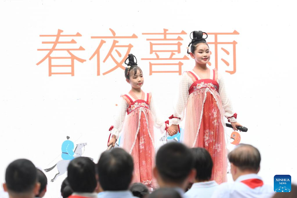 Children perform during a series of activities to celebrate the International Children's Day in Chengdu, southwest China's Sichuan Province, May 31, 2023. Chengdu, a historical city in southwest China's Sichuan Province, is home to treasured cultural and historical sites, including Sanxingdui Ruins, Jinsha Site Museum, and Dujiangyan irrigation system. In recent years, Chengdu has witnessed the rapid development of its cultural and creative industry, showcasing its vitality, creativeness and energy. (Xinhua)