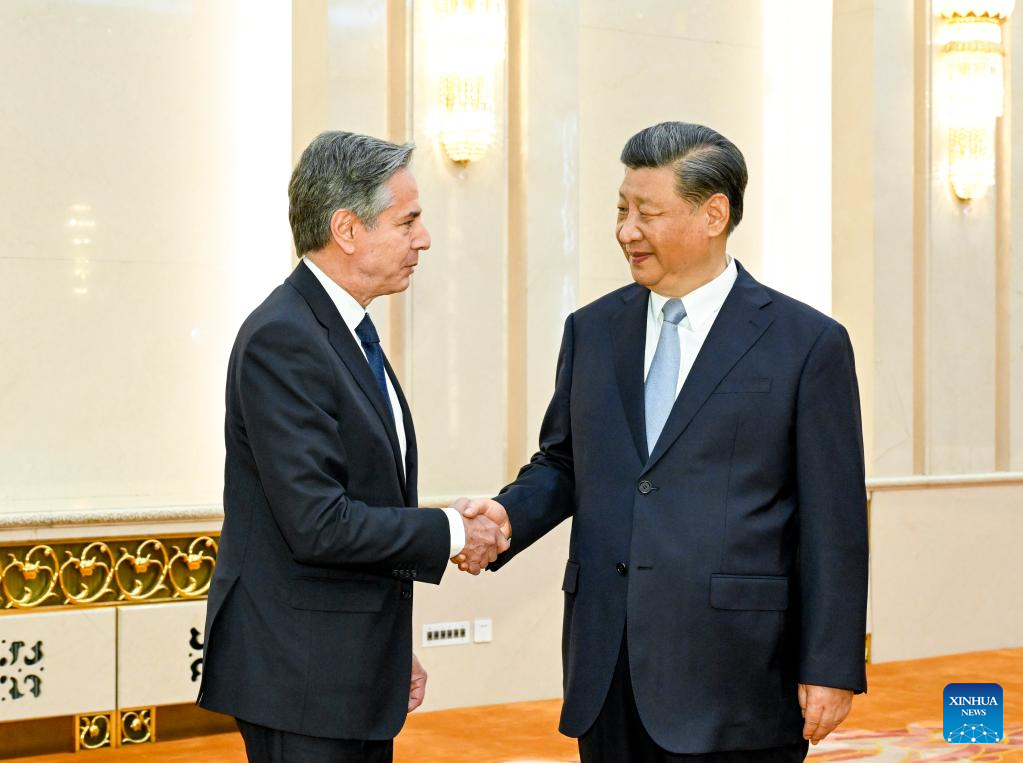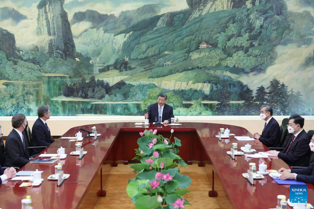 BEIJING, June 19 (Xinhua) -- Chinese President Xi Jinping met with U.S. Secretary of State Antony Blinken at the Great Hall of the People on Monday.