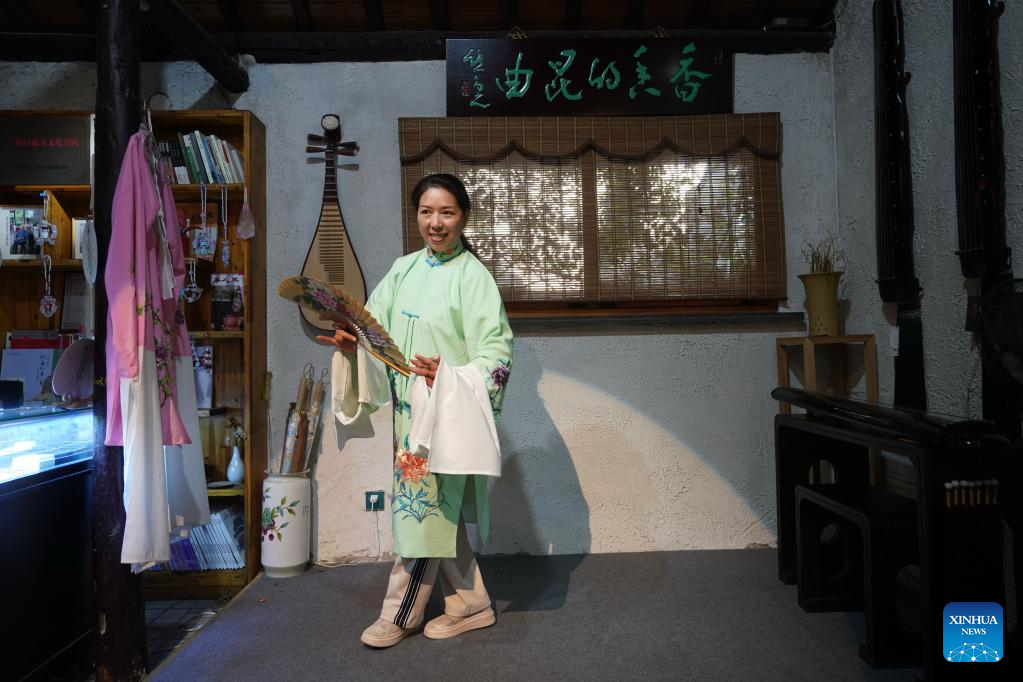 An intangible cultural heritage inheritor of Kunqu Opera performs in Yangzhou, east China's Jiangsu Province, June 14, 2023. (Xinhua/Ji Chunpeng)