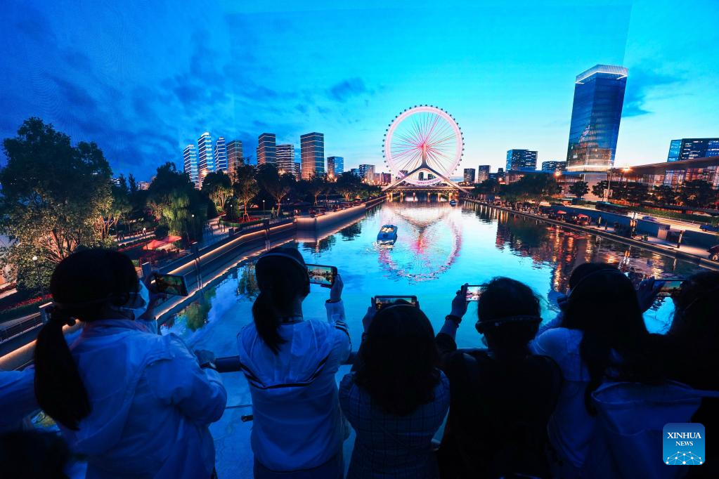 People visit a 5G-powered immersive experience zone at China Grand Canal Museum in Yangzhou, east China's Jiangsu Province, June 14, 2023. (Xinhua/Ji Chunpeng)
