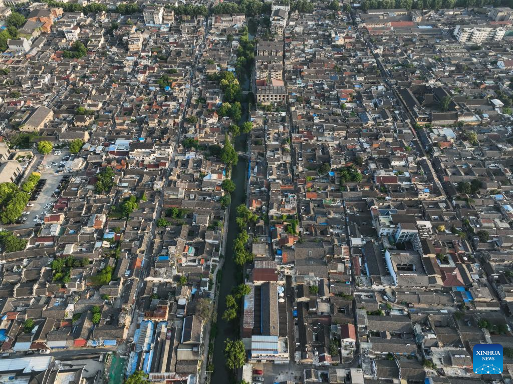 This aerial photo taken on June 14, 2023 shows a view of the old town of Yangzhou, east China's Jiangsu Province. (Xinhua/Ji Chunpeng)
