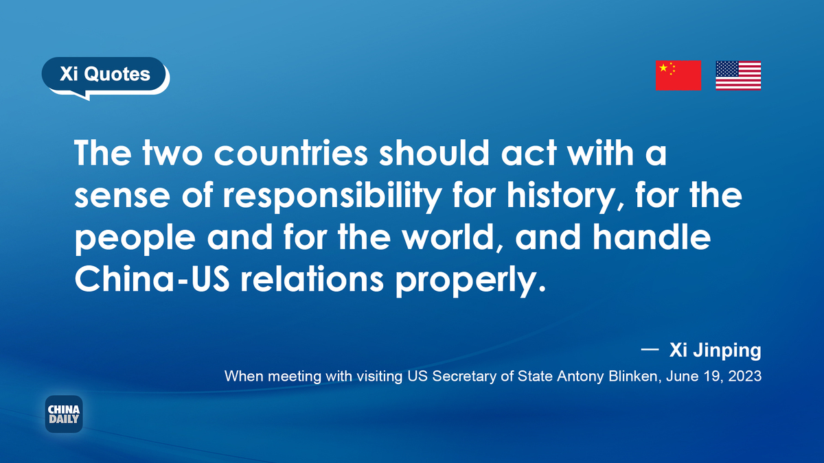President Xi Jinping met with US Secretary of State Antony Blinken at the Great Hall of the People in Beijing on Monday. Here are some highlights from the meeting.
