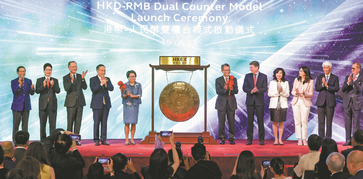 The launch ceremony for the Hong Kong dollar-renminbi Dual Counter Model in Hong Kong on Monday. CALVIN NG/CHINA DAILY