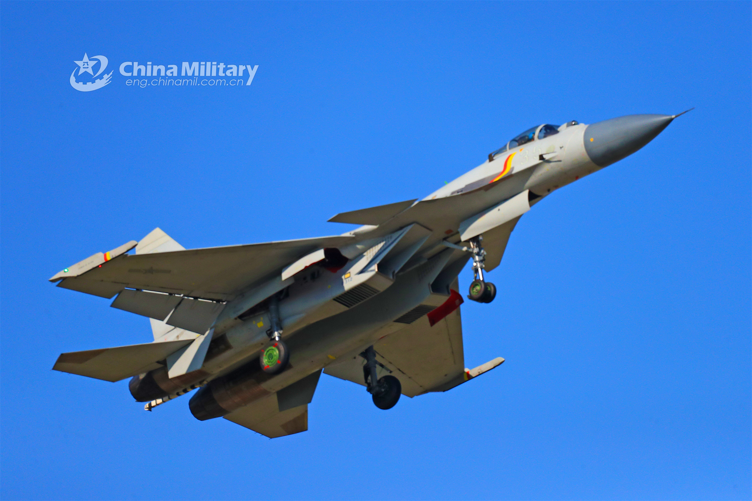 A fighter jet attached to a base under the PLA Naval Aviation University takes off for a recent flight training exercise. (eng.chinamil.com.cn/Photo by Jiang Tao)