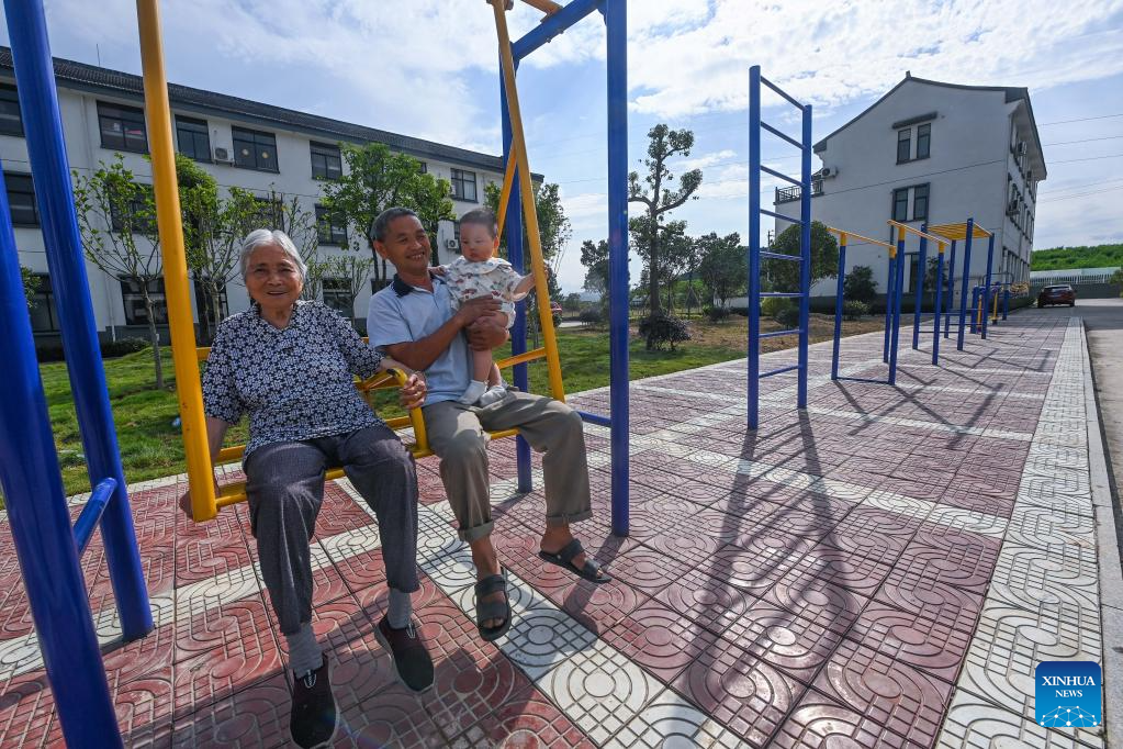 Residents enjoy themselves in their community in Huayuan Village of Nanma Town, Dongyang City, east China's Zhejiang Province, June 19, 2023. (Xinhua/Xu Yu)
