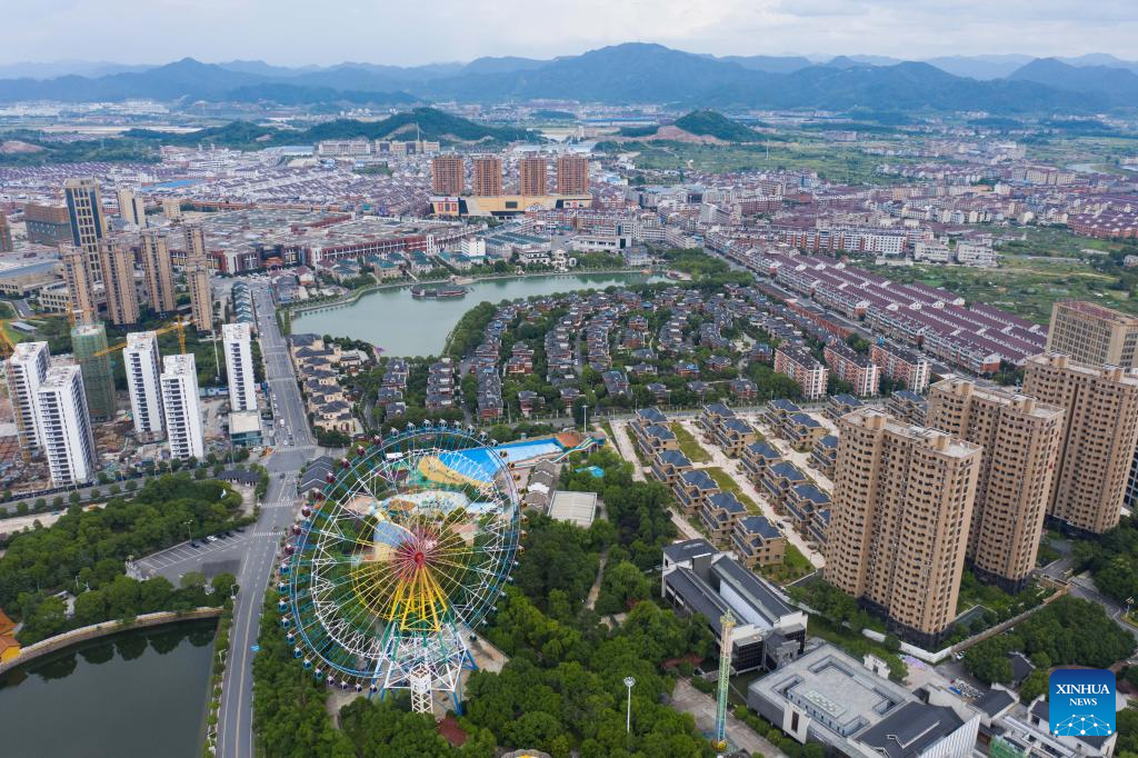 This aerial photo taken on June 19, 2023 shows a view of Huayuan Village of Nanma Town in Dongyang City, east China's Zhejiang Province. (Xinhua/Xu Yu)