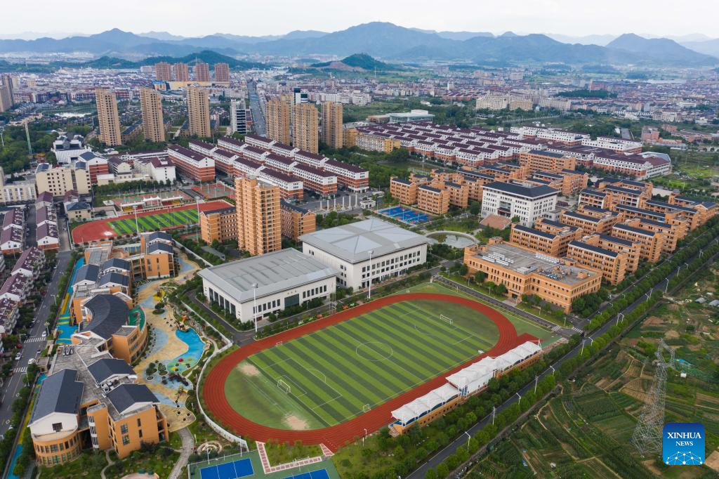 This aerial photo taken on June 19, 2023 shows a school in Huayuan Village of Nanma Town, Dongyang City, east China's Zhejiang Province. (Xinhua/Xu Yu)