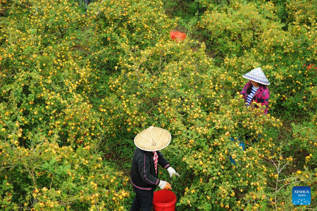GUIYANG, June 20 (Xinhua) -- The thorn pear, as its name suggests, is a wild fruit species that is adorned with thorns in its natural state. However, when juiced, it reveals a blend of sourness and subtle sweetness.